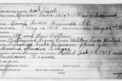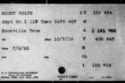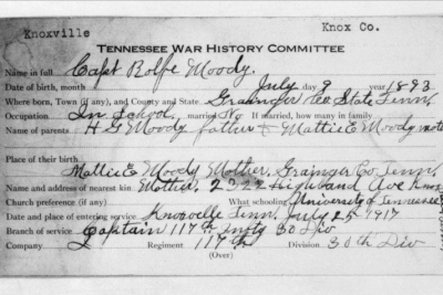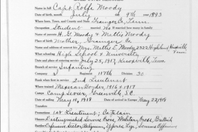 Rolfe Moody was my great grand uncle. My great grandmother, Hallye Moody Lyle’s only sibling. My father and I have a lot of information about him and our family and we are interested in sponsoring his memorial. My father is planning to visit his gravesite in Bony, France next year. — Submitted by Pamela Pressley