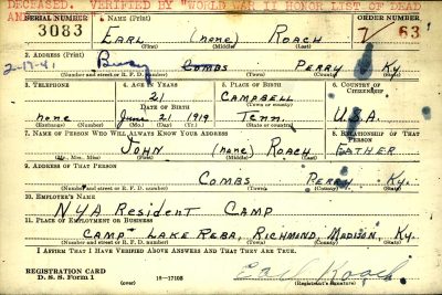 Earl Roach was born 21 June 1919, son of John Roach of LaFollette. He had been in service since August, 1942 and overseas since July, 1944. He was killed in action in Germany.