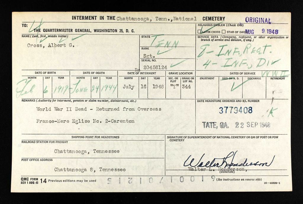 - Burial/Memorial Location: Chattanooga National Cemetery, Chattanooga, TN