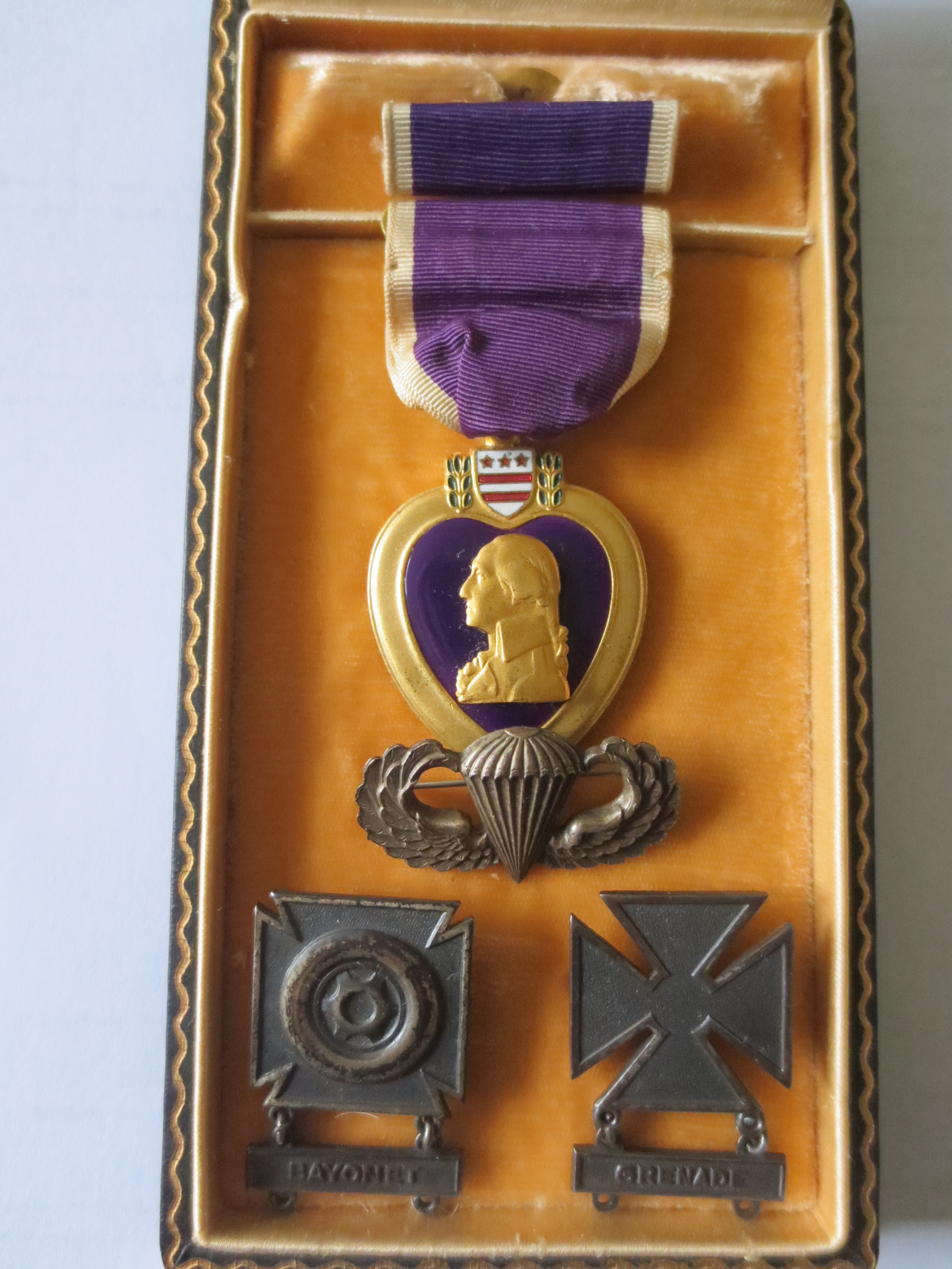 - Awards: Purple Heart and bayonet, grenade and Airborne Badge