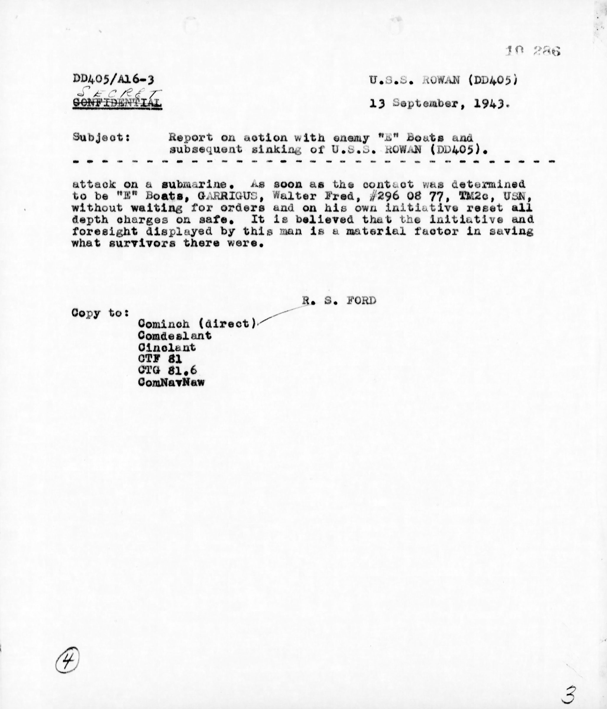 - Division/Assignment: USS Rowan (DD405)