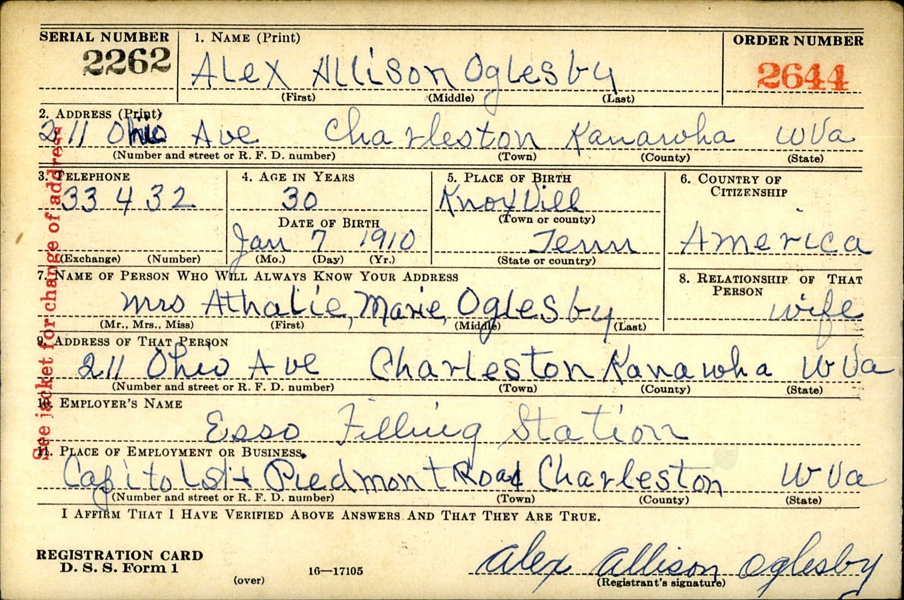 Alexander ‘Alex’ Allison Oglesby was born in Knoxville, Tennessee, the son of James Alcano Oglesby and Della Maud Cash. Brother of Betty Jane Oglesby and Matraca Oglesby. He was married to Athalie Marie Oglesby,