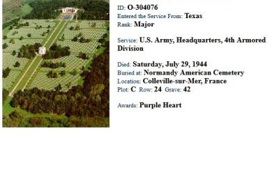 - Burial/Memorial Location: Normandy American Cemetery, Colleville-sur-Mer, France