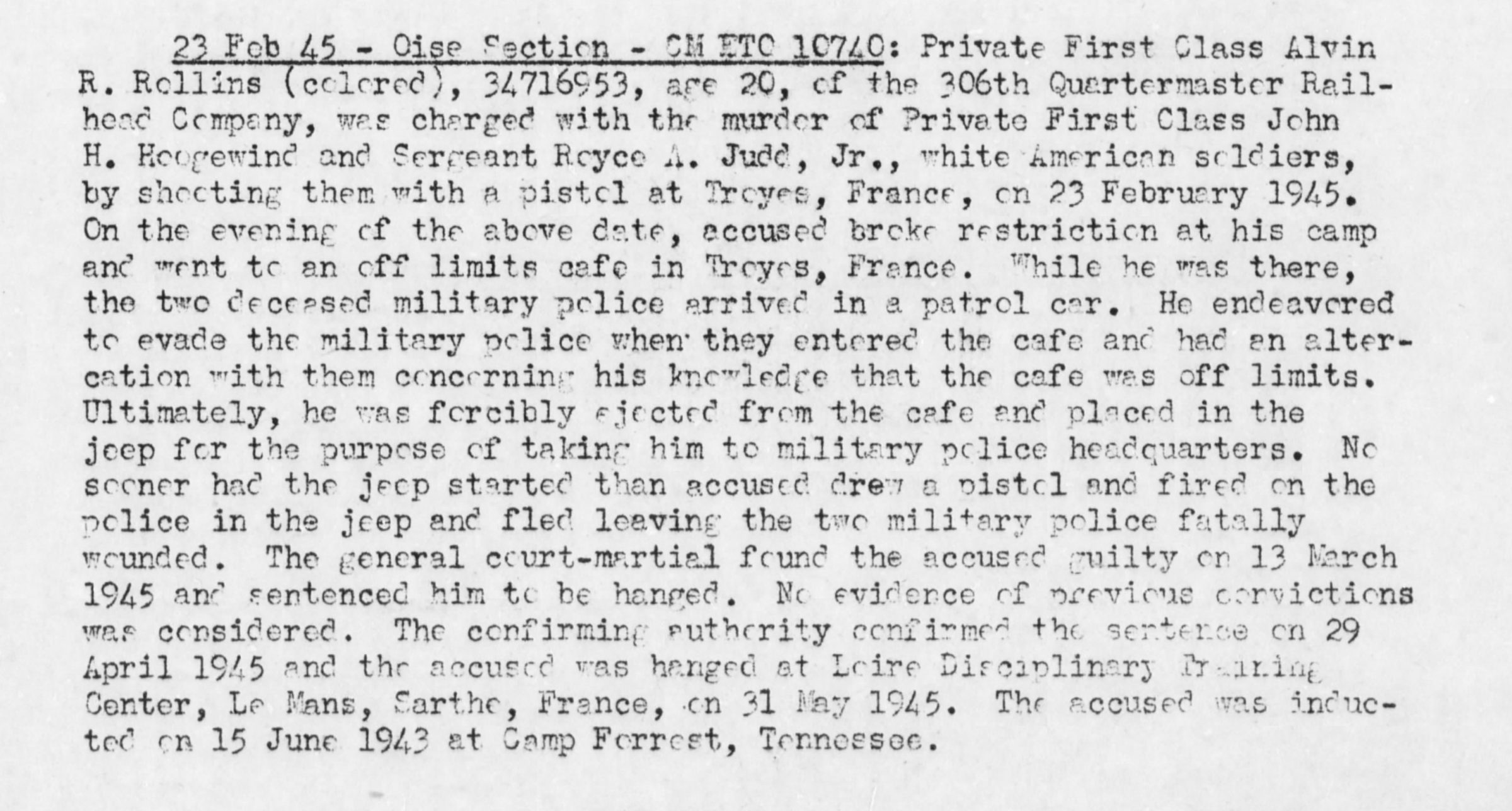 - Service Branch: Army/Army Air Forces