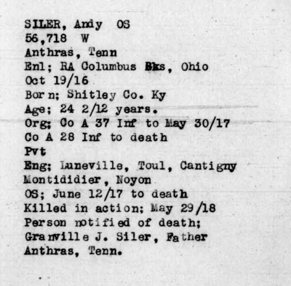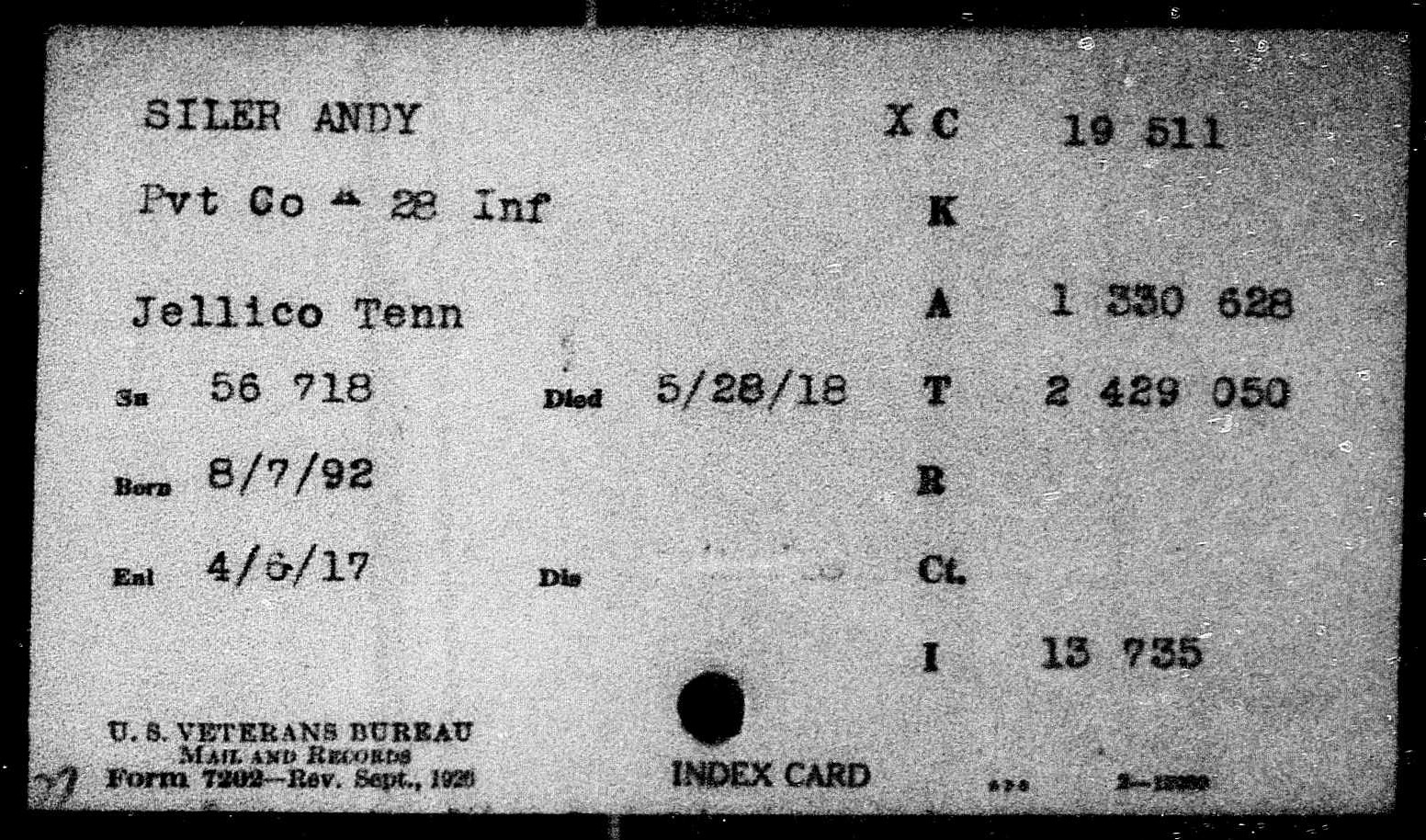 Andy Siler was born in Shitley County, KY, son of Granville J. Siler.