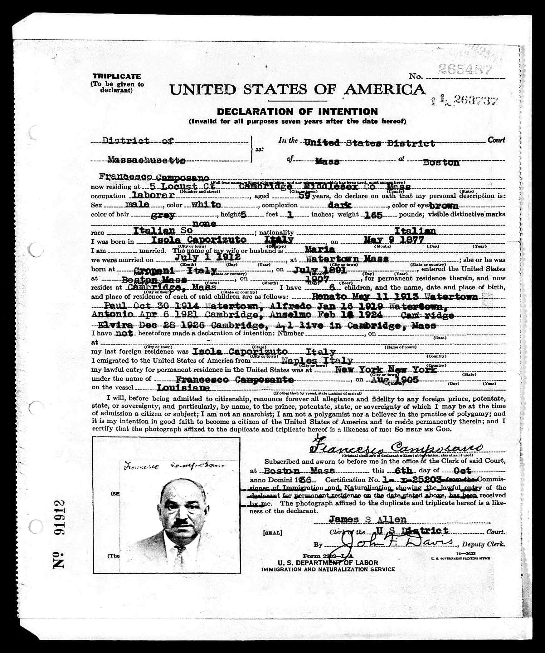 Anthony Sebastiano Camposano was born in Cambridge, Massachusetts, son of Francesco Camposano and Maria Flecca. His father was born in Italy and emigrated to the United States in 1905 under the name of Francesco Camposante.