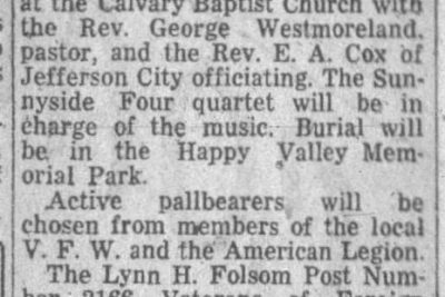 Funeral service for Private First Class Antie E. Souder, 23, whose body arrived in Johnson City will be conducted at the Cavalry Baptist Church. Burial will be in the Happy Valley Memorial Park.