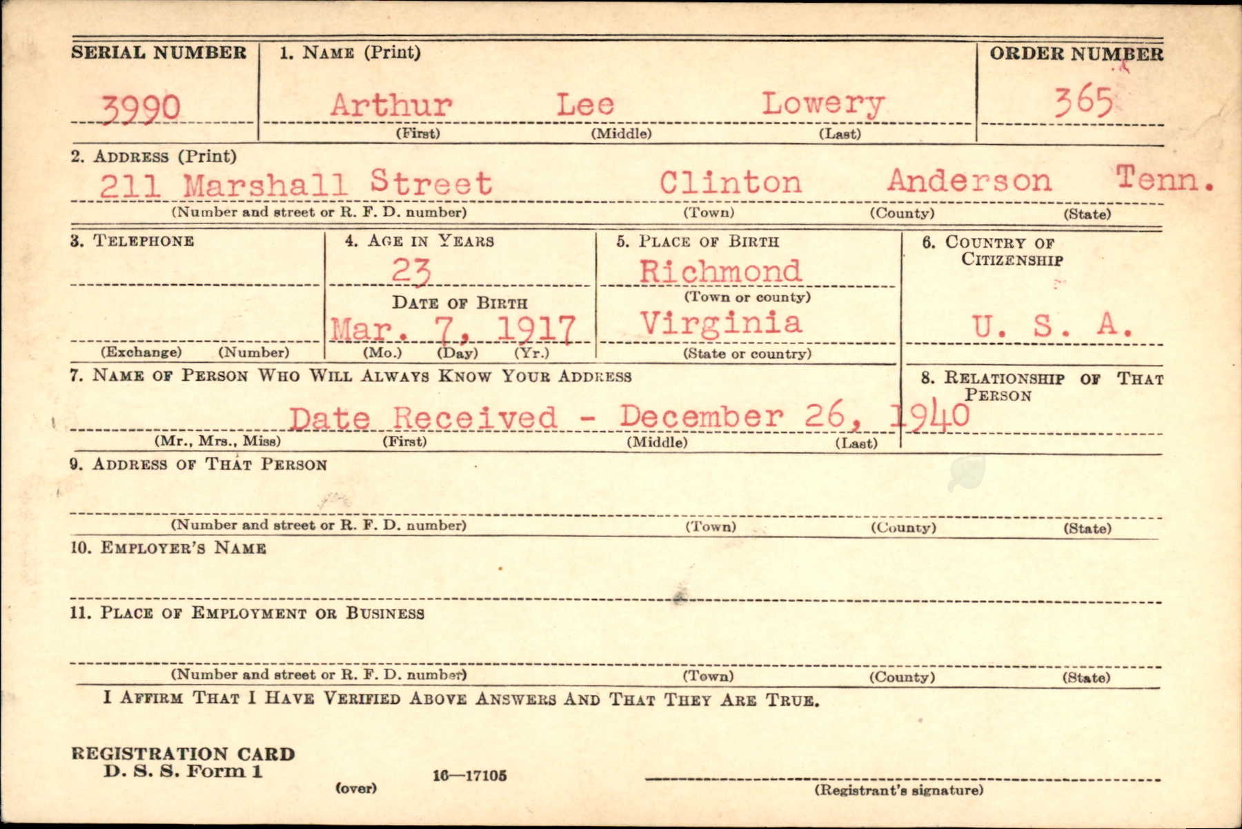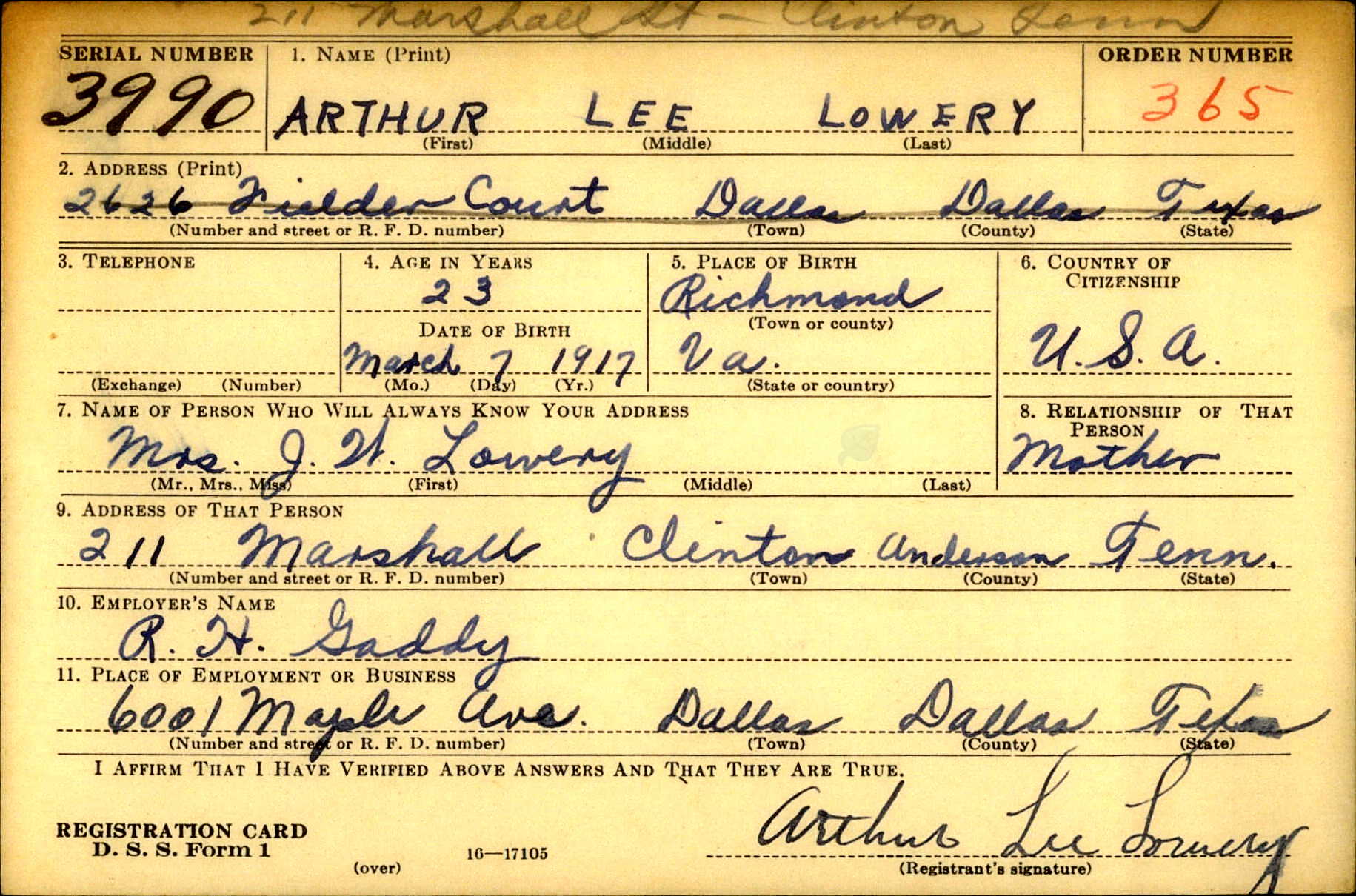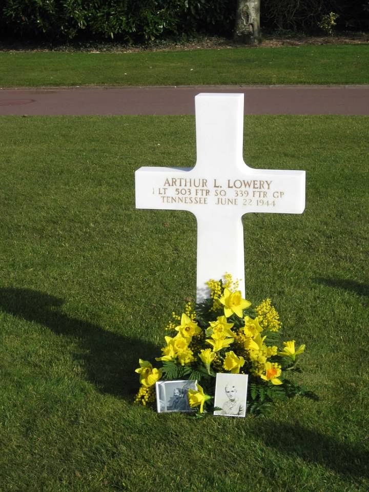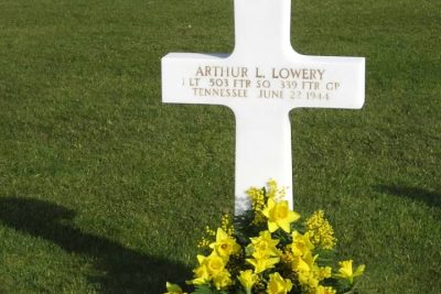 Arthur “Ott”Lowery was initially buried at Saint-André-Cemetery at Évreux, France and re-buried at Normandy American Cemetery, Colleville-sur-Mer, France; Plot A, Row 1, Grave 32.