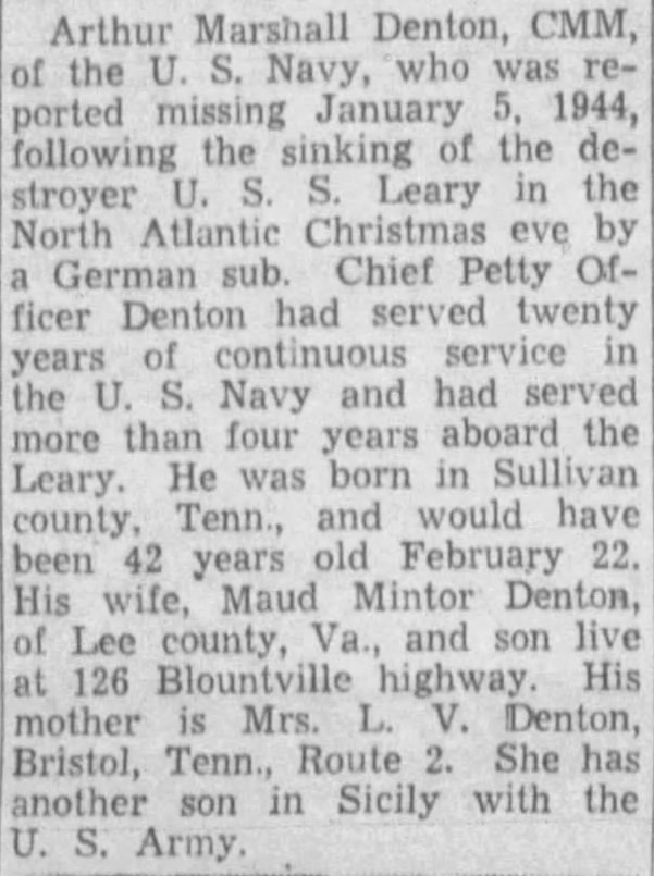 Arthur Marshall Denton was born in 1902 in Sullivan County, Tennessee, the son of Benjamin C Denton and Lavinia Peterman. He was married with Maude Elise Minor and father of Guy Thomas Denton.