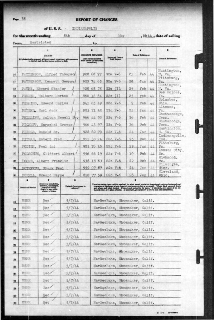 - Division/Assignment: USS Indianapolis (CA-35)