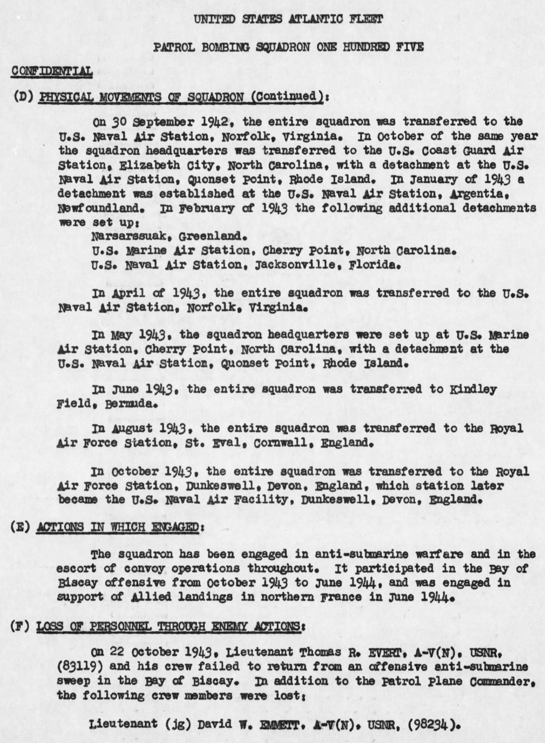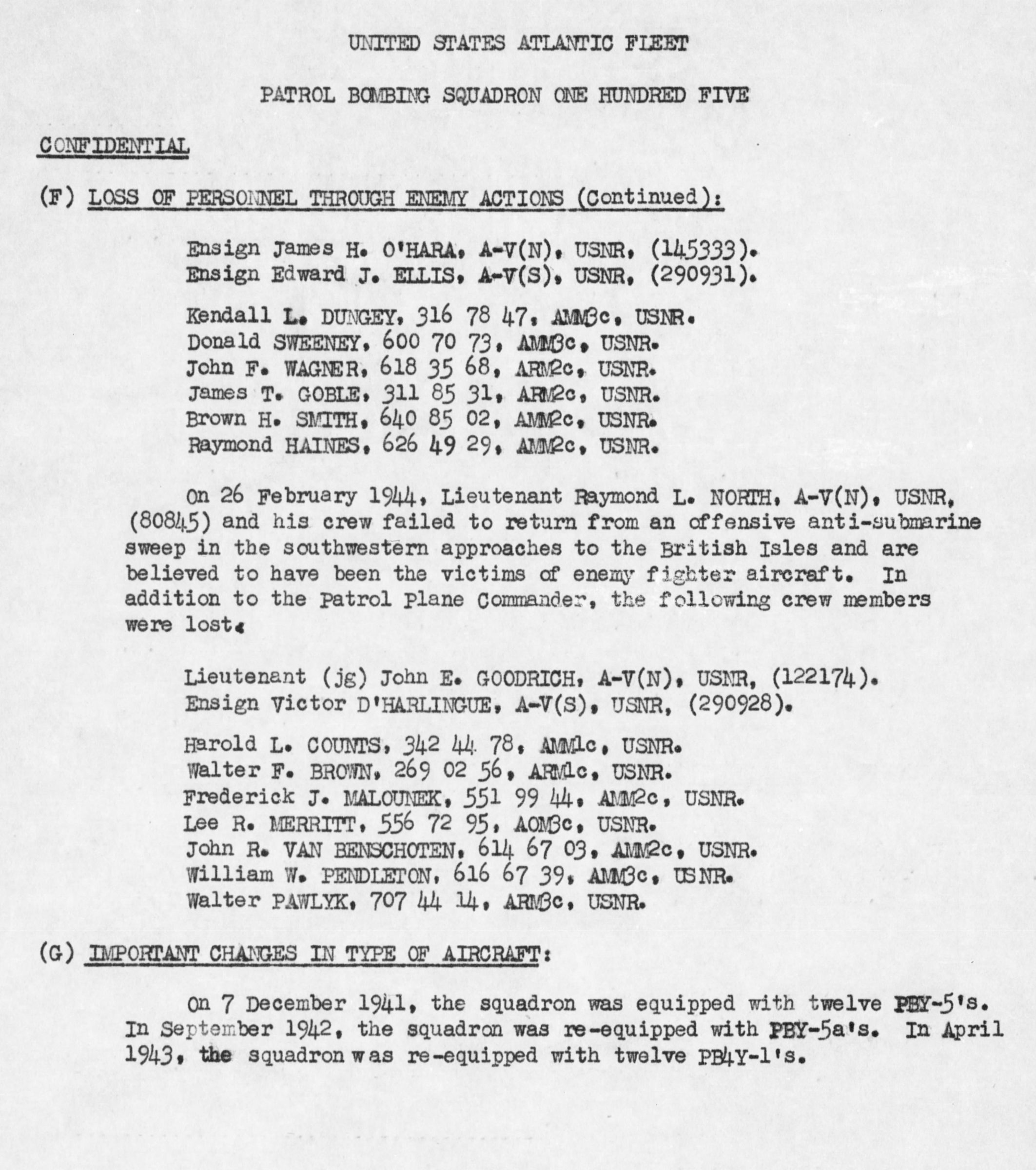 Brown Smith was a member of crew of a plane, which took off from England on a routine operational flight and was declared overdue and missing on October 23, 1943.