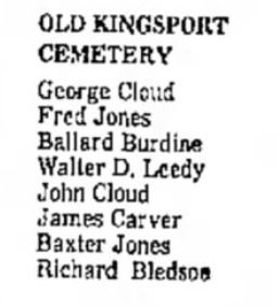 - Burial/Memorial Location: Old Kingsport Cemetery, Kingsport, TN