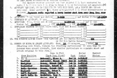 On 18 April 1944 Aircraft B-24DR, Serial number 42-40622, departed from the base at Kweilin, China on a sea sweep mission. Japanese radio reported a heavy bomber shot down near Hong Kong the same day.