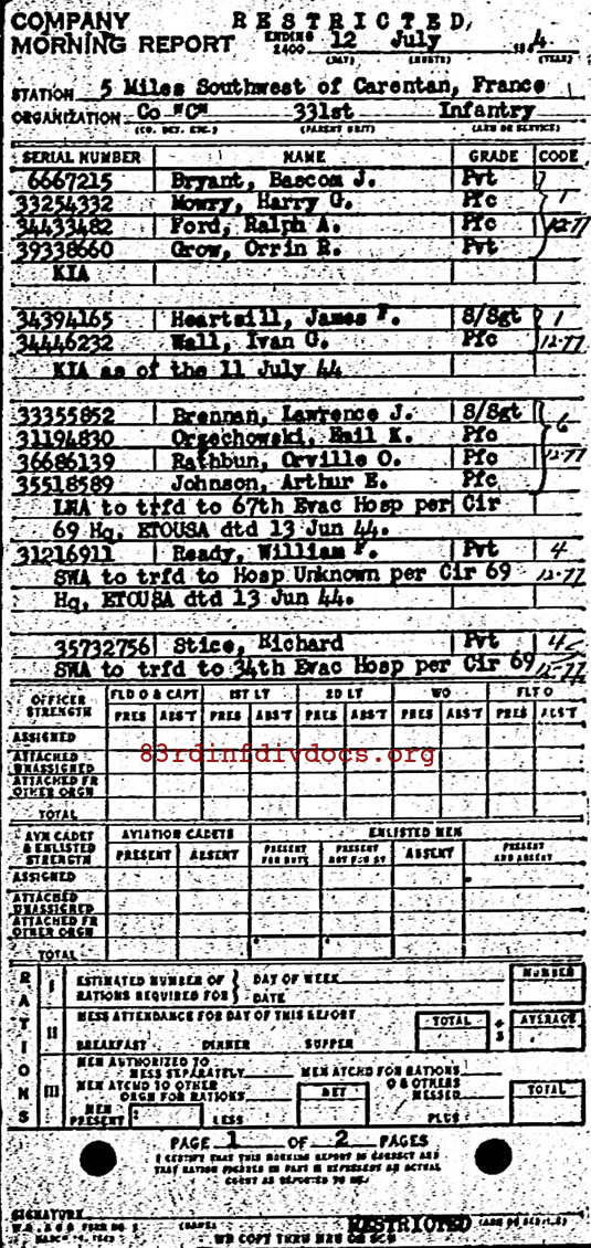 - Division/Assignment: 331th Infantry Regiment, 83rd Division