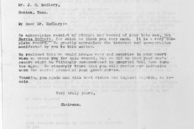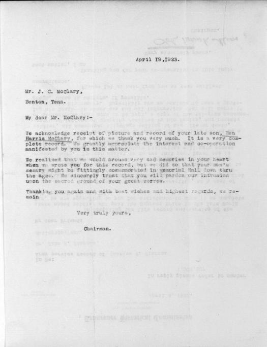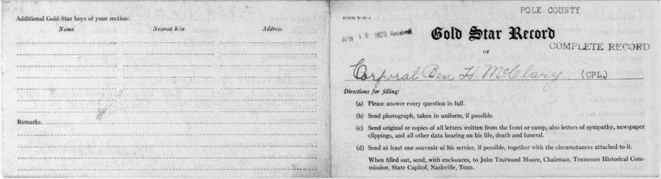 The picture of Corporal McClary is from the Chattanooga Sunday Times Memorial Supplement, May 25, 1919.