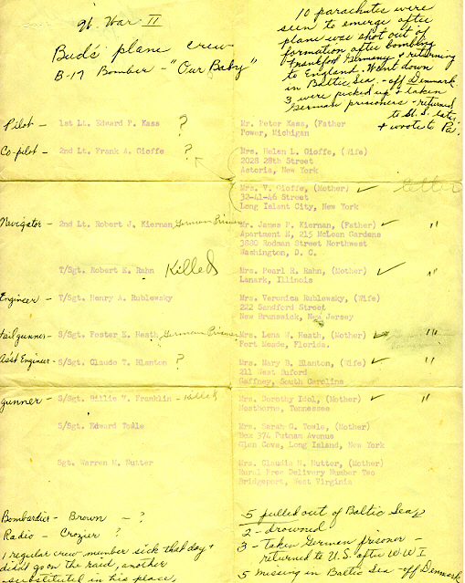 Billie Franklin was initially buried in a mass grave at the new cemetery of Wiek/Ruegen on May 30, 1944, together with Robert Rahn, Edward Towle and an unknown soldier.