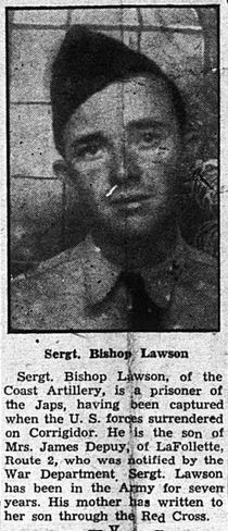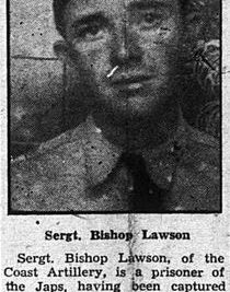 Sergeant G. Bishop Lawson joined the service prior to WW II. He was assigned to D Battery, 59th Coastal Artillery Regiment. On the 8th of December 1941 the Japanese attacked the Philippines. The 59th artillery defended Corregidor and Fort Drum until they were surrendered on the 6th of May 1942.