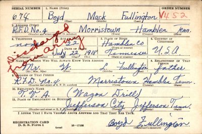 Boyd Mack Fullington was born on 23 July 1918, the son of William Walter Fullington and Susie Bell McClanahan. Husband of Mae Fruge.