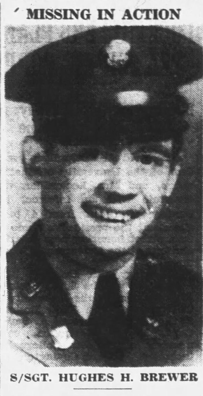 Listed as missing in action was S.Sgt. Hughes H. Brewer, son of Mrs. Belle B. Stephens, Ootewah, Tenn. Tail gunner on a bomber, Brewer has been missing since Dec. 20 in action over Germany. He enlisted in the service in 1941 and has been overseas since months. Brewer attended Ooltewah High School.