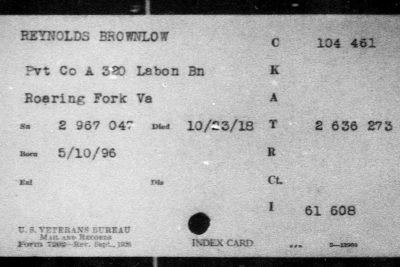 Brownlow Reynolds was born 10 May 1896 in Rogersville, Tennessee. He was married to Ruth Reynolds.