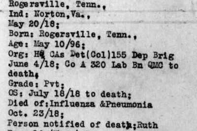 He died of influenza and pneumonia on 23 October 1918, and is buried plot D, row 19, grave 30, at St-Mihiel American Cemetery, Thiaucourt, France.