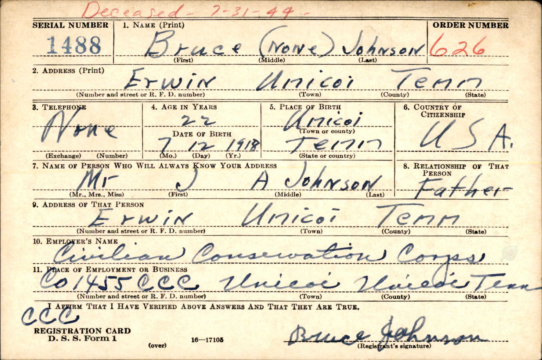 Bruce Johnson was the son of James Alexander Johnson and Minnie Marylee Furchess.