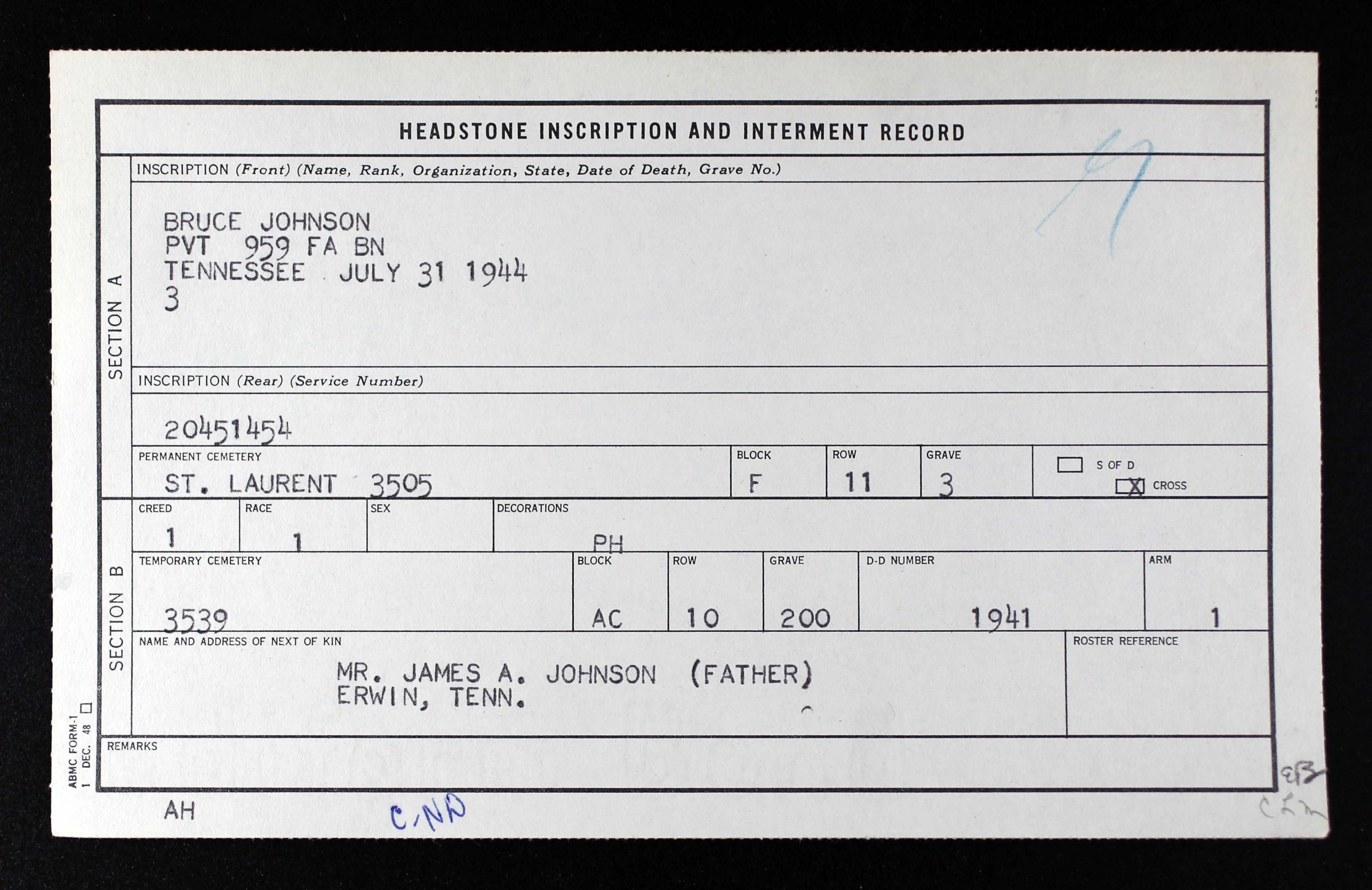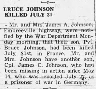 His younger brother, James C. Johnson, also served in WW2 and was imprisoned as a POW in Stalag 3B , which was liberated in 1945.