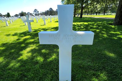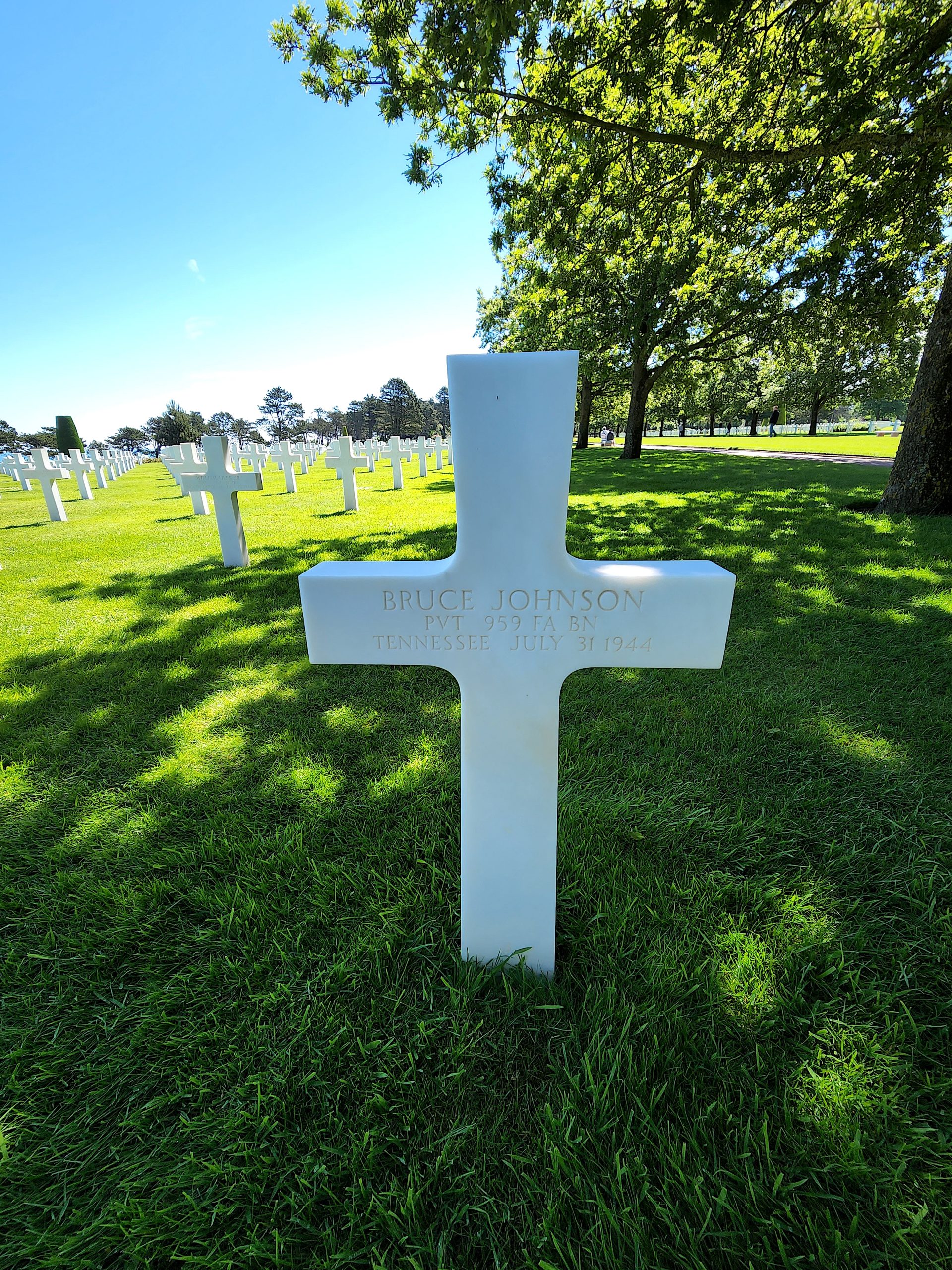 He was killed in action on July 31, 1944 in France and was initially buried at La Cambe Cemetery at Isigny, France. He was reburied at Normandy American Cemetery, Colleville-sur-Mer, France, F, 11, 3.
