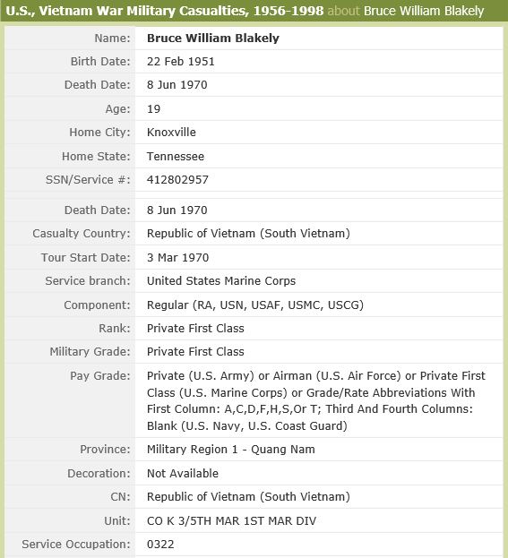 -Died at the age of 19 in Quang Nam, South Vietnam