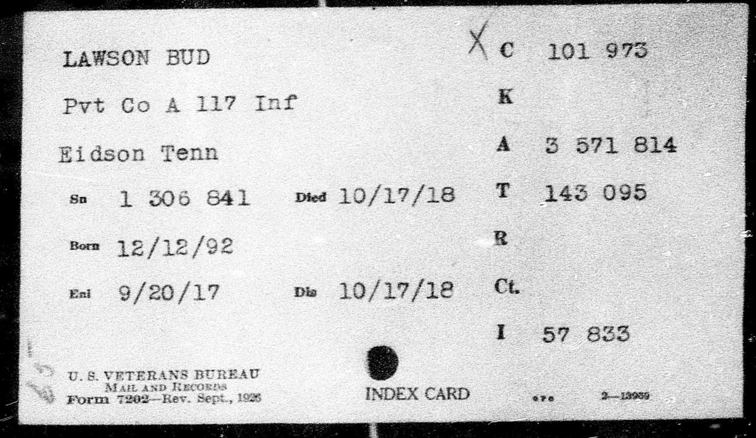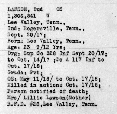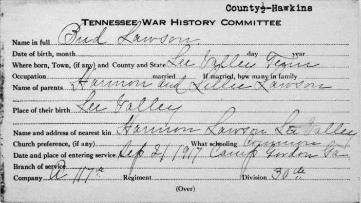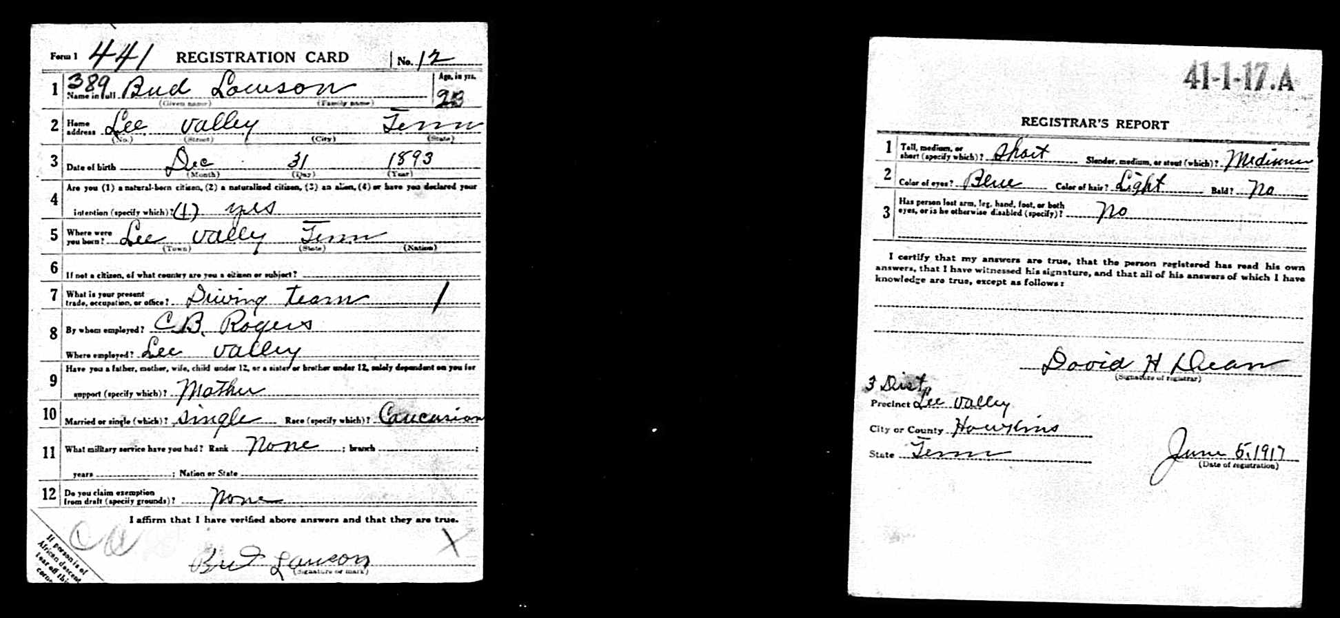 Bud Lawson was born in Lee Valley, Tennessee to Harmon and Lillie Lawson.