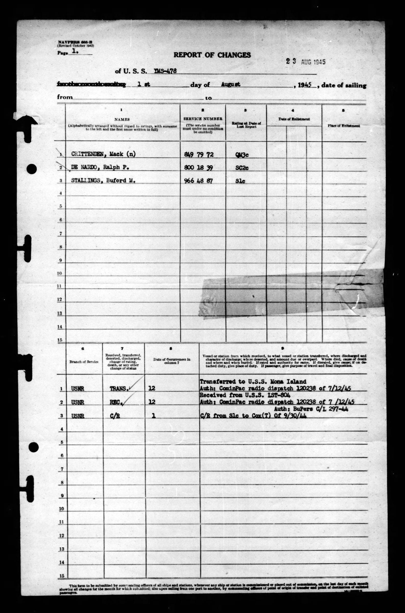 - Division/Assignment: USS YMS-478