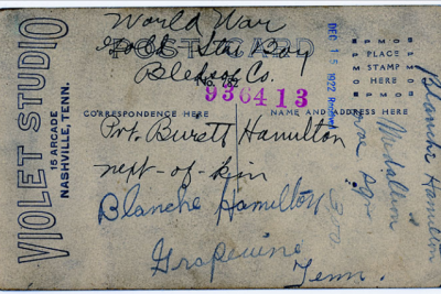 Pvt Burett (also spelled as Burrett) Hamilton was born in December 1899 in Grapevine, TN, son of John Robert Hamilton and Mary Lue Parks.