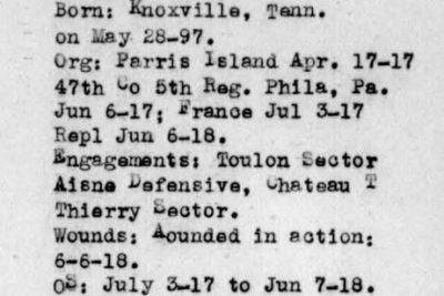 - Battles: Toulon Sector, Aisne Defensive, Chateau Thierry Sector, Marne