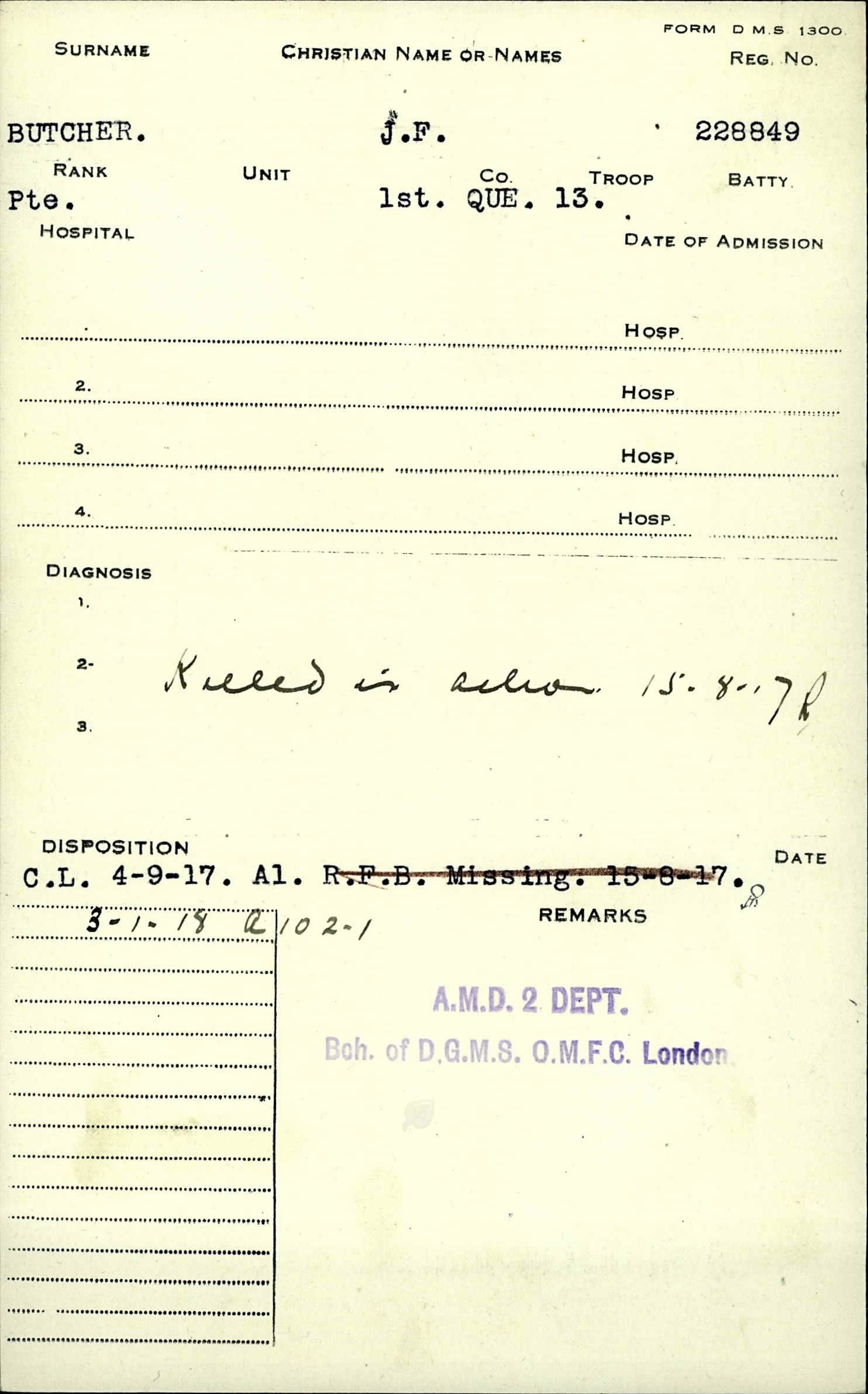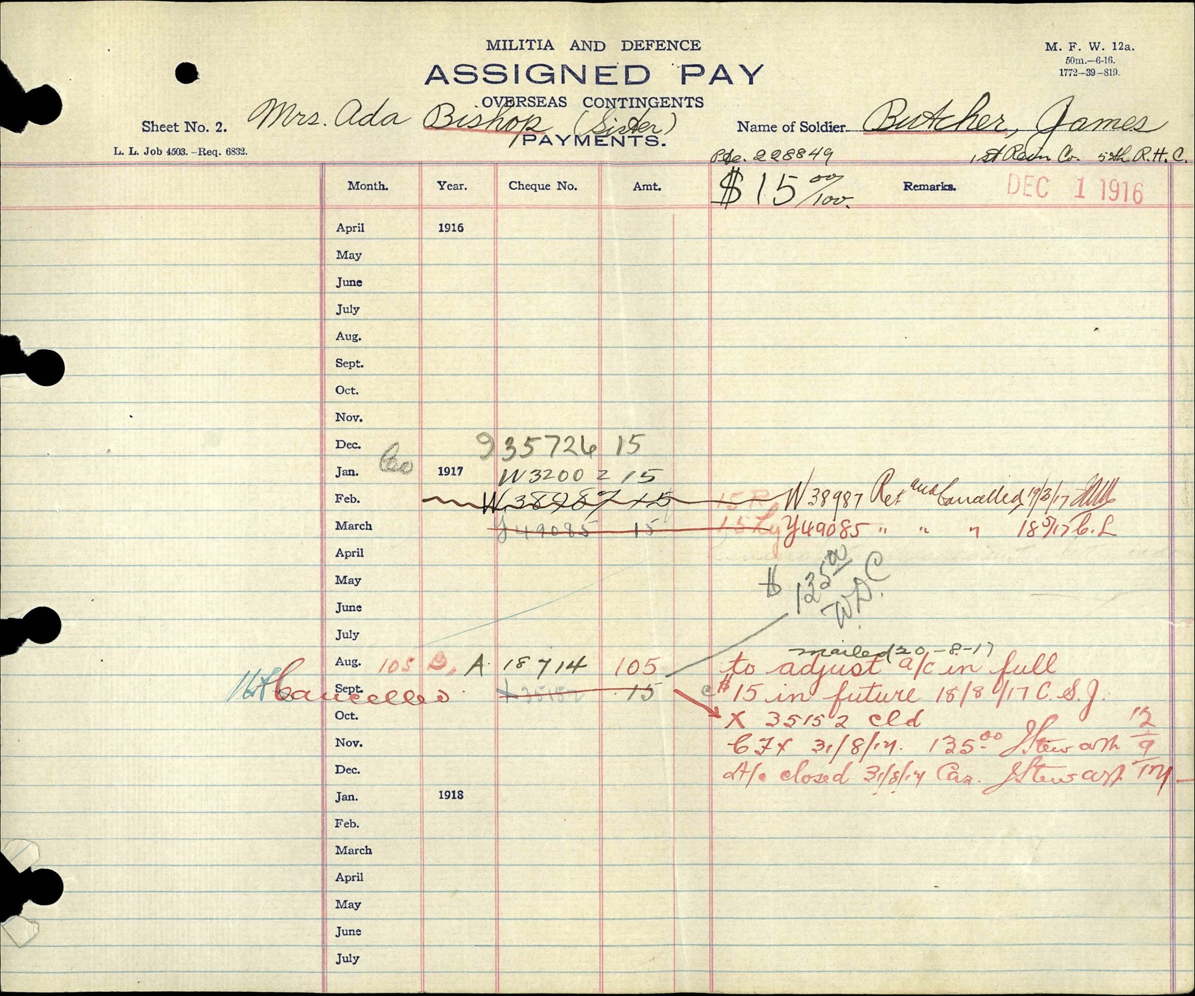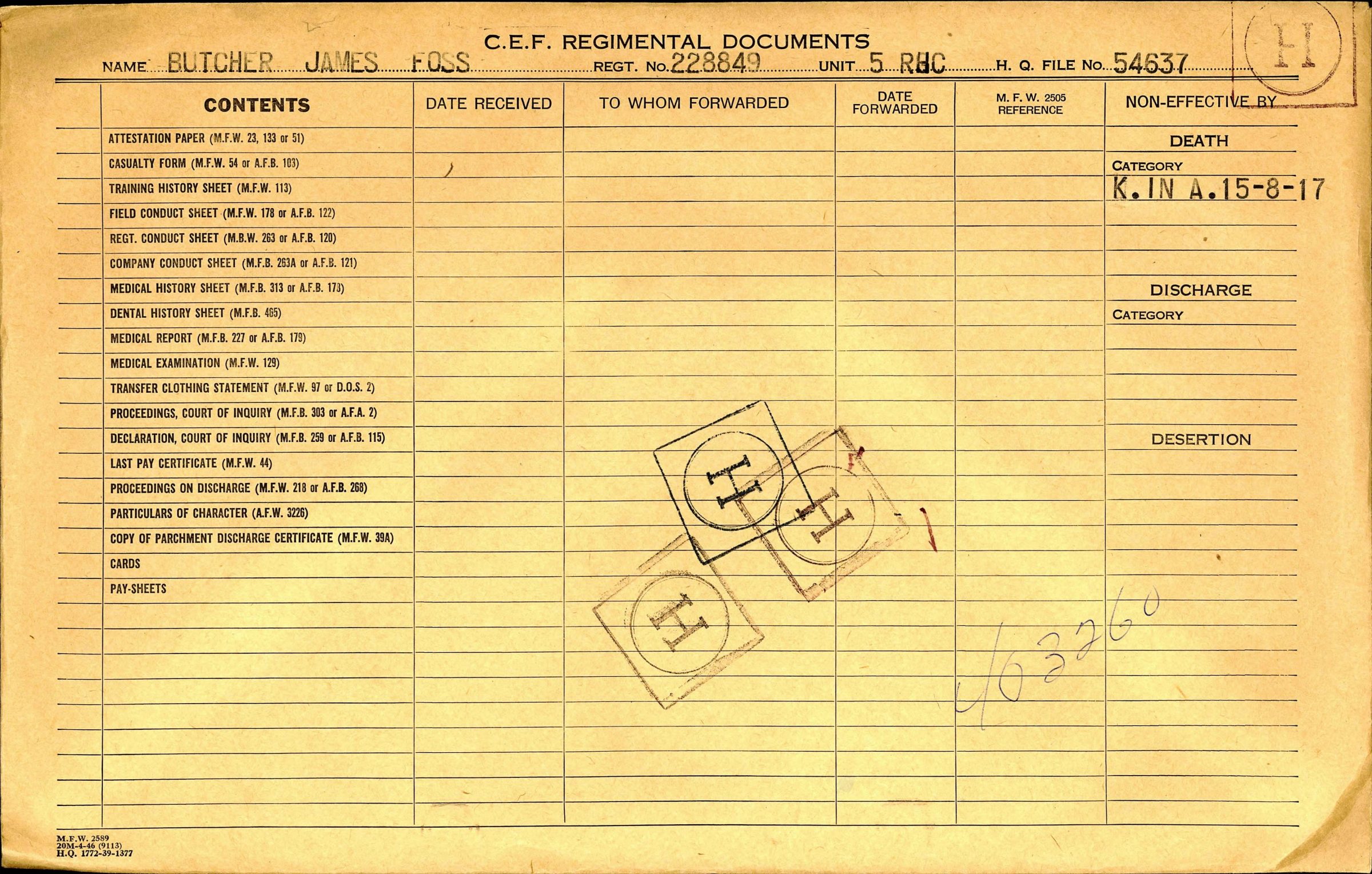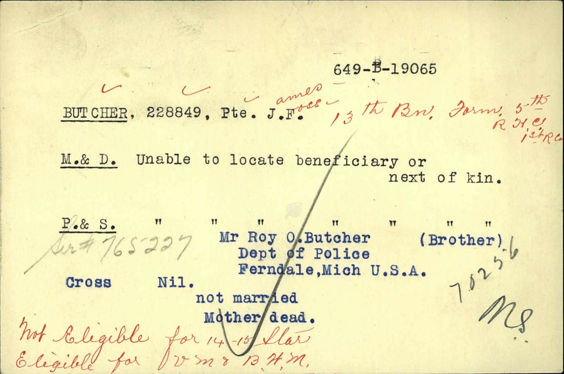 His serialnumber with the Canadian Forces was 228849. He joined the Canadian Overseas Expeditionary Force on August 16, 1916. He was a Private at the time of his death and served with the 13th Battalion Canadian Infantry (Quebec Regiment).