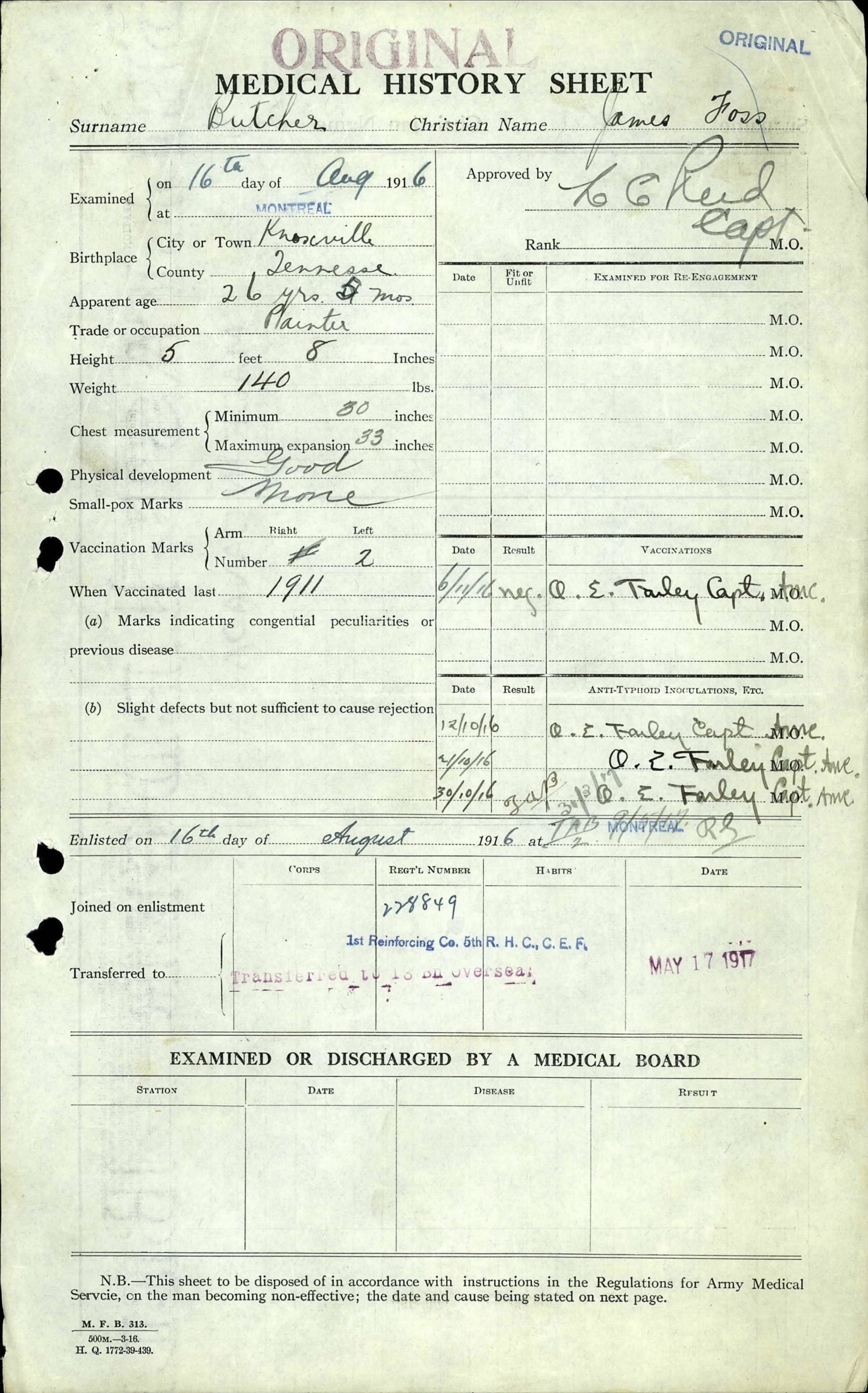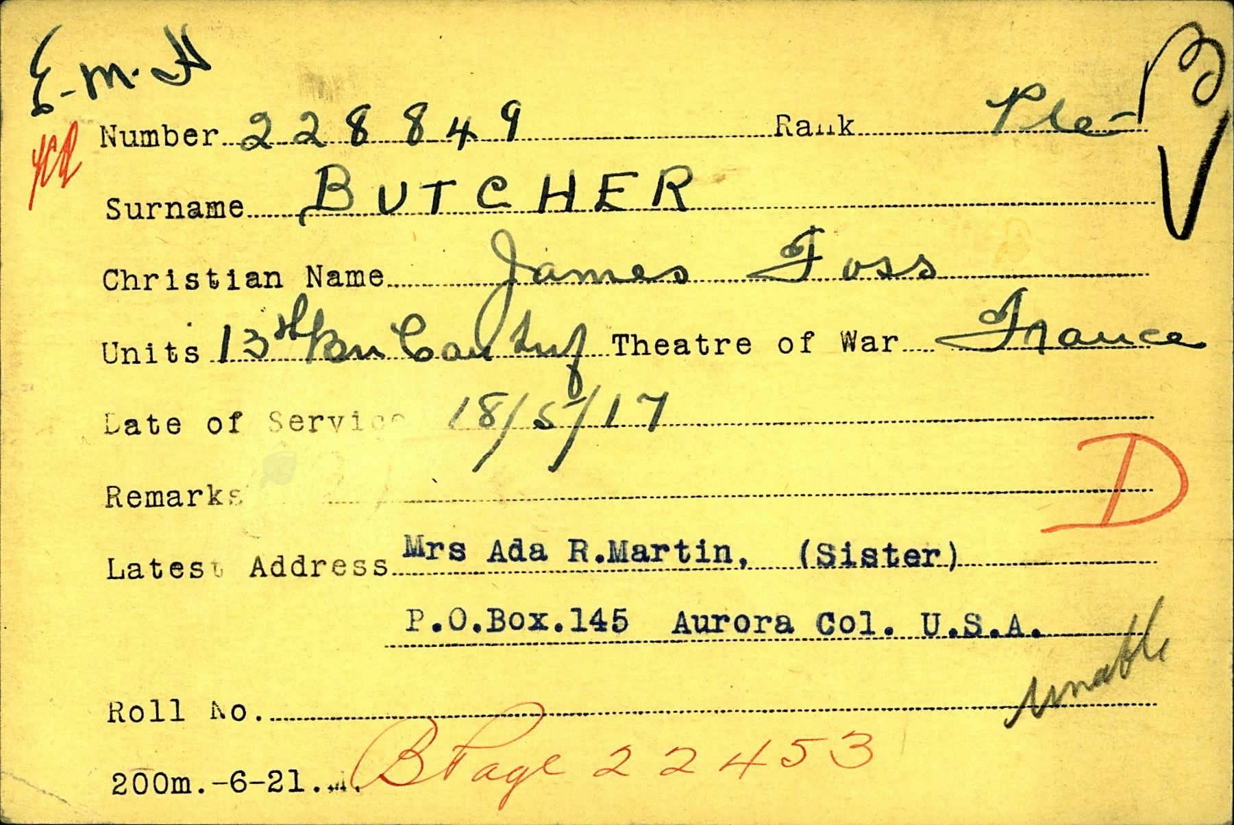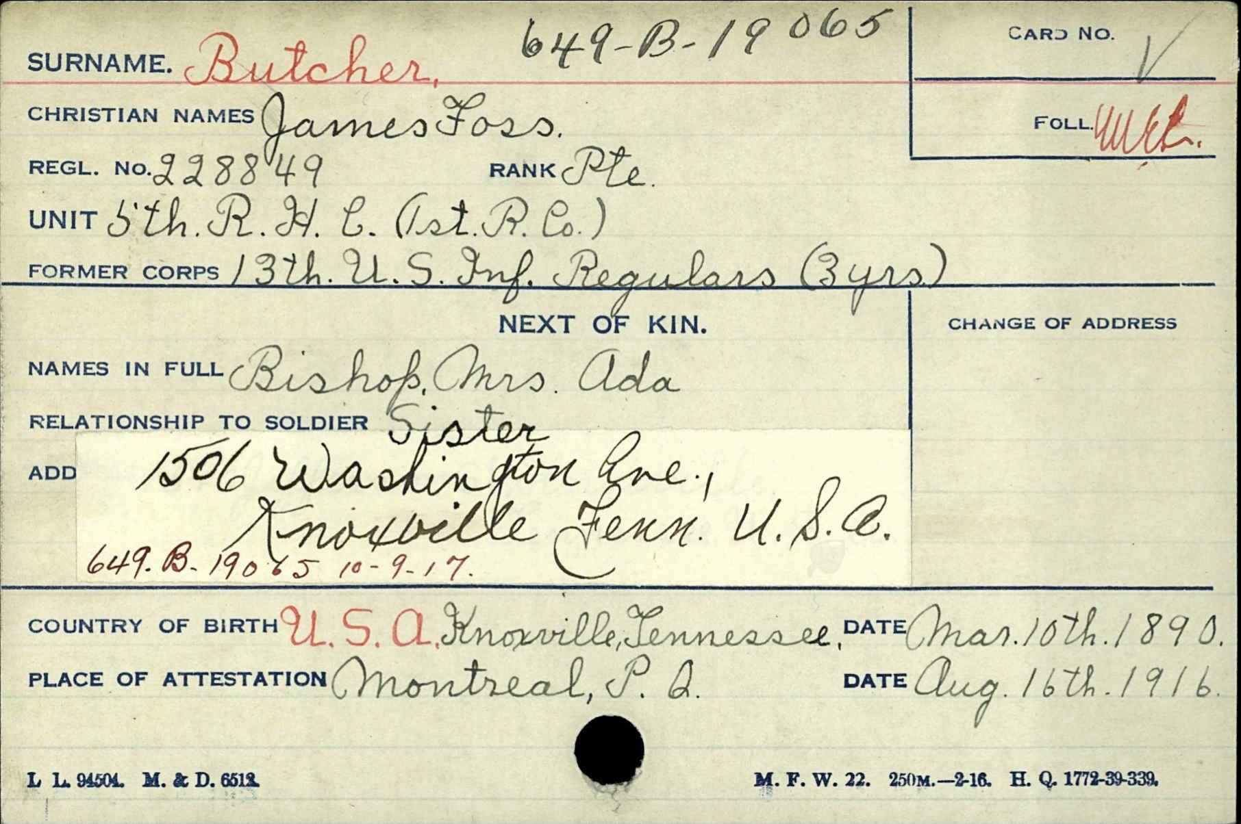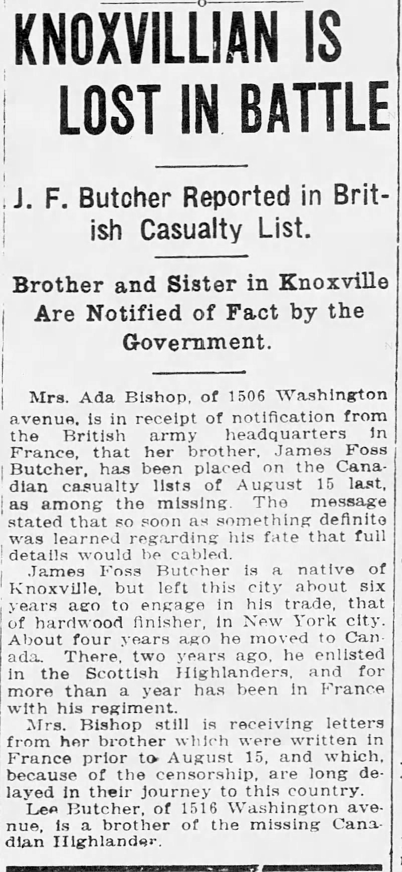 James Foss Butcher was born on March 10, 1890 in Knoxville, Tennessee. He was the son of Samuel C. Butcher and Eva Gentry.