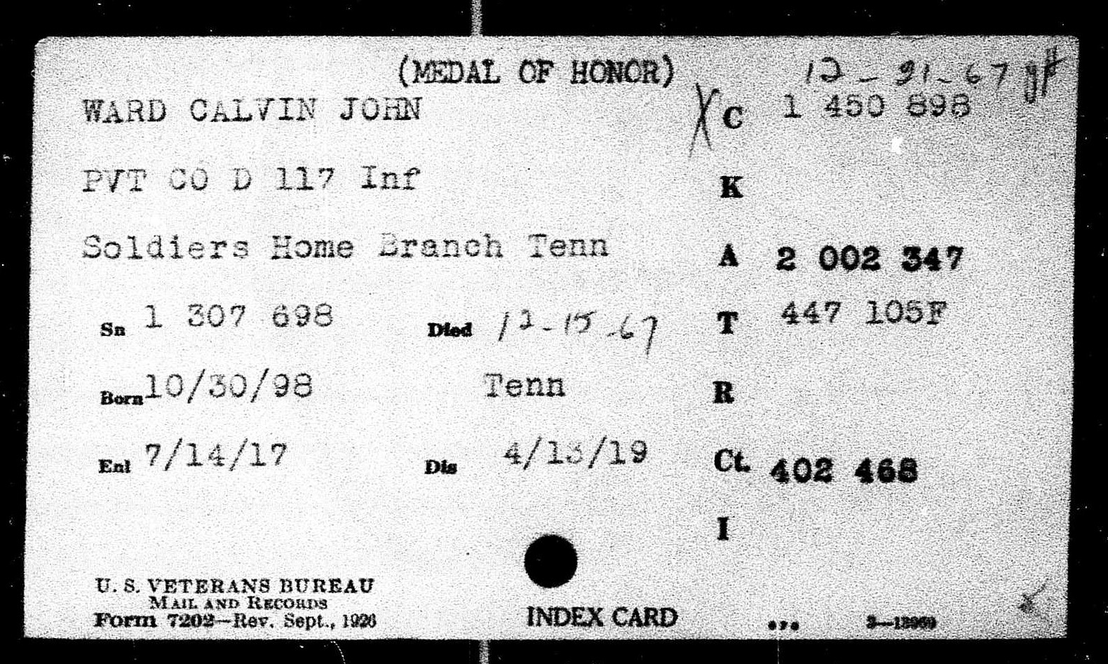 See also: Medal of Honor Recipient John Calvin Ward …