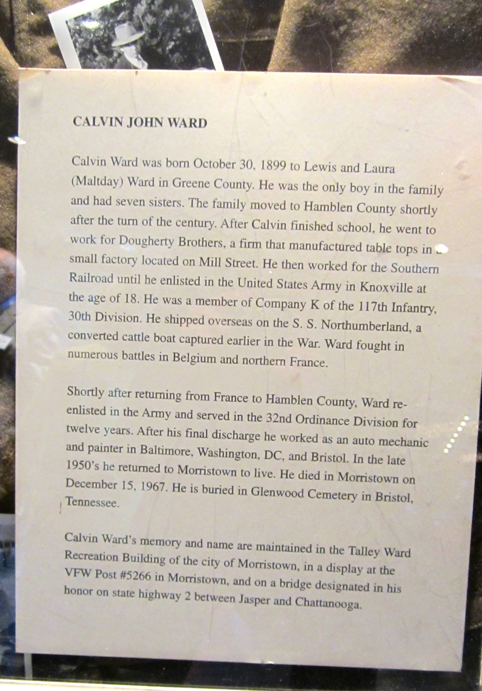 - Division/Assignment: Company D, 117th Infantry Regiment, 30th Infantry Division