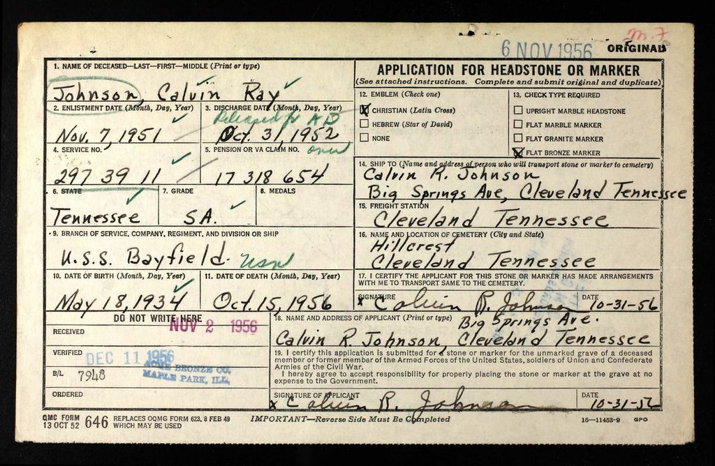 - Burial/Memorial Location: Hillcrest Cemetery, Cleveland, TN