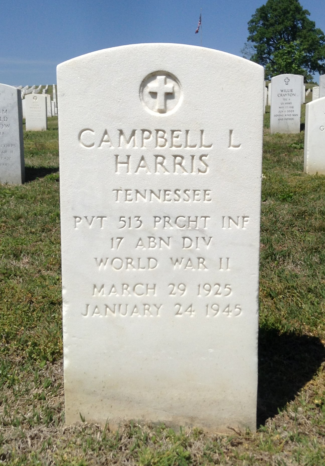 Campbell Lee Harris was born on 29 March 1925 at Tynes, Tennessee, the son of James W Harris and Estella Geneva Lawson. Stepson of Lonnie L. Bell.