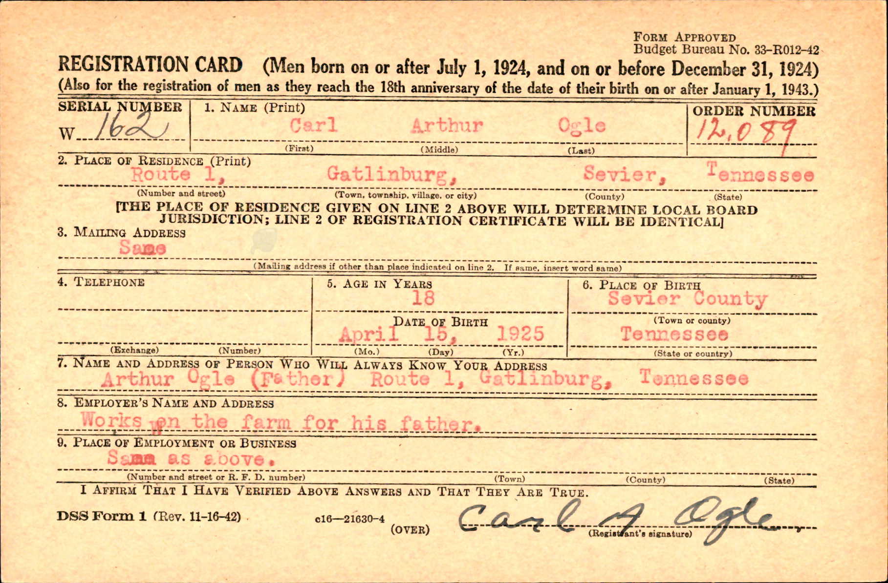 Parents: Mr. and Mrs. Arthur Ogle, Rt 1, Gatlinburg, TN