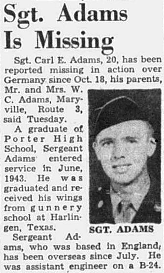 Carl Edward Adams was the son of William Carl Adams and Annie Donaldson.