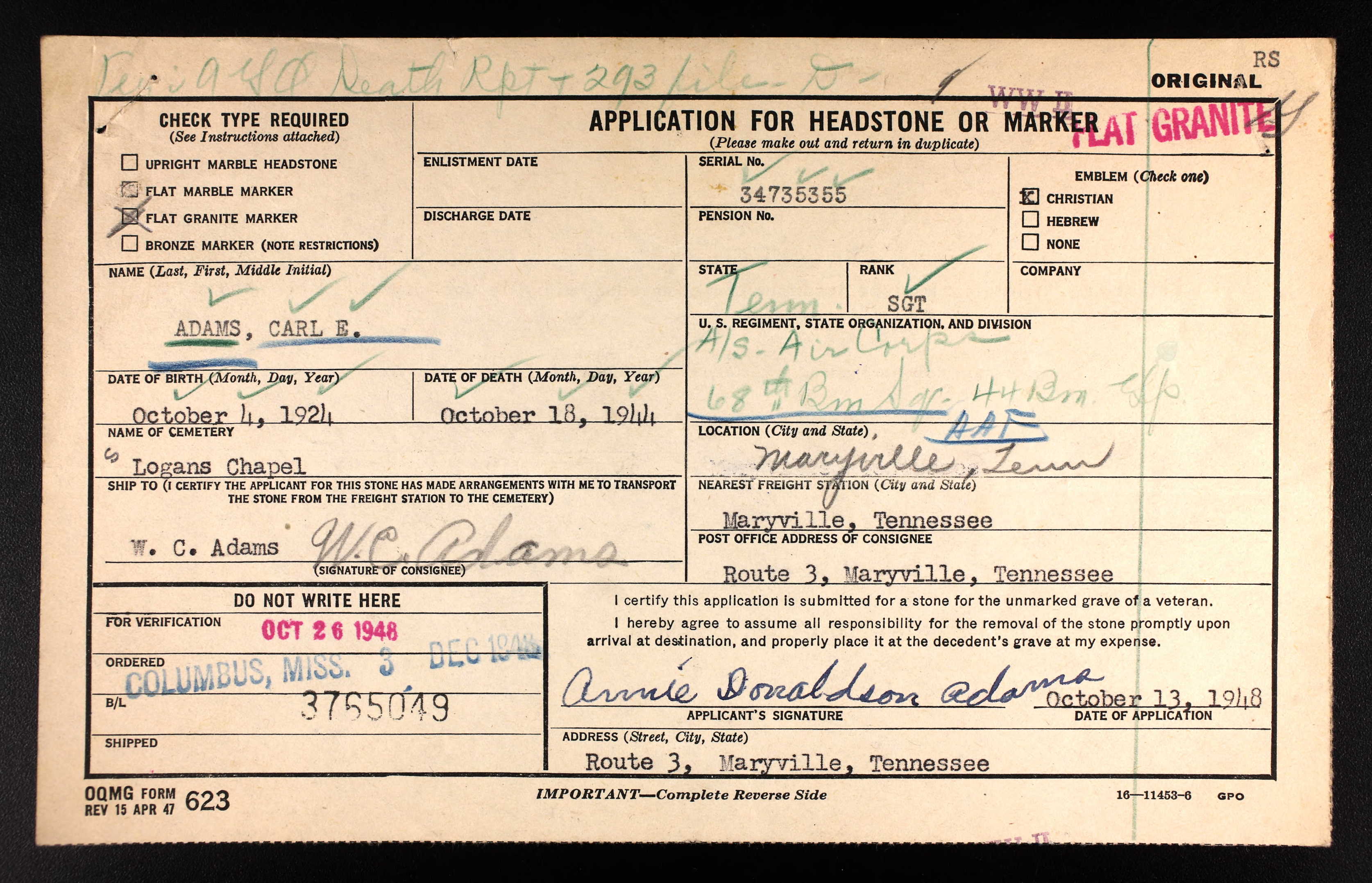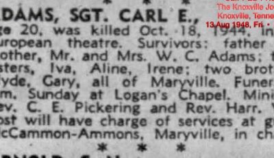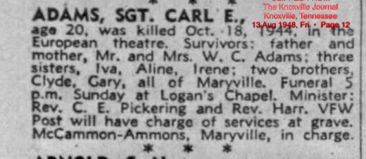 - Burial/Memorial Location: Logans Chapel Cemetery, Maryville, TN