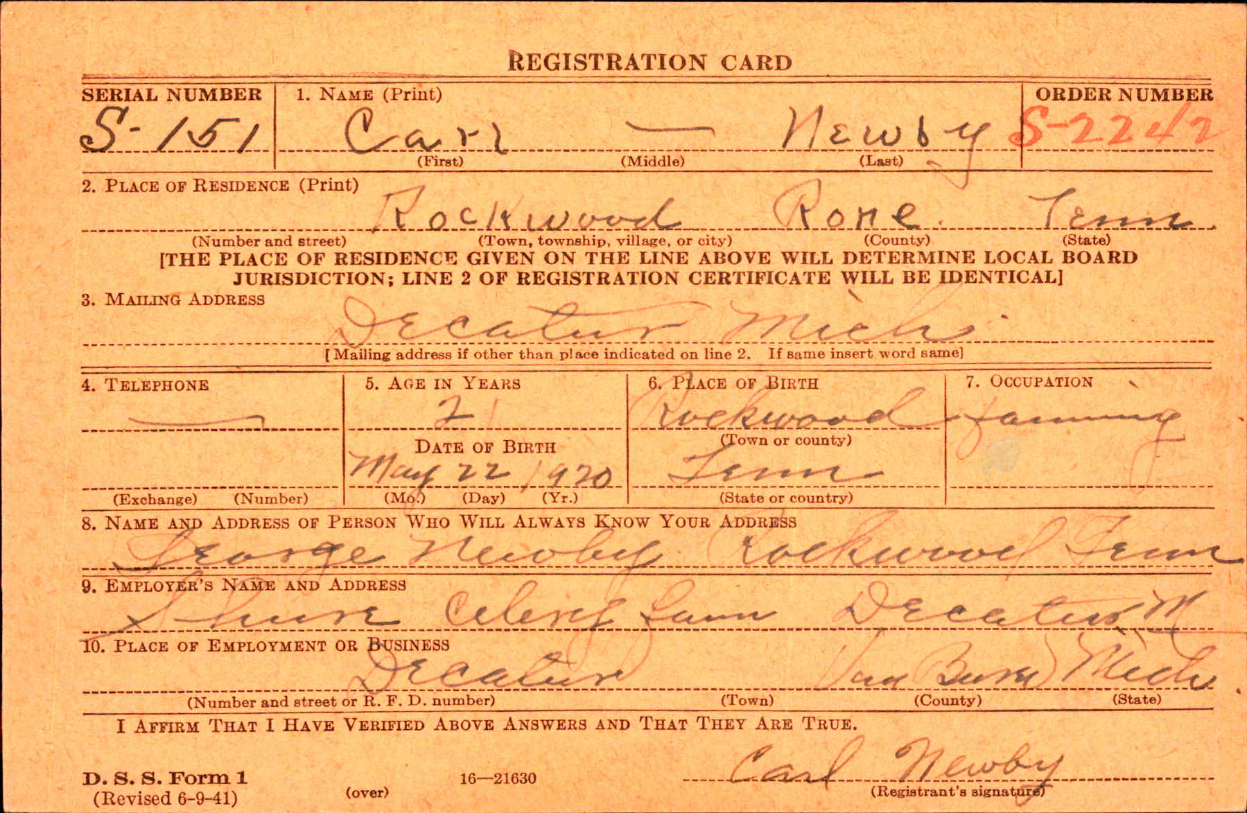Carl Newby was born 21 May 1920 to George Franklin Newby and Dora May Lovelace.
