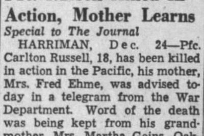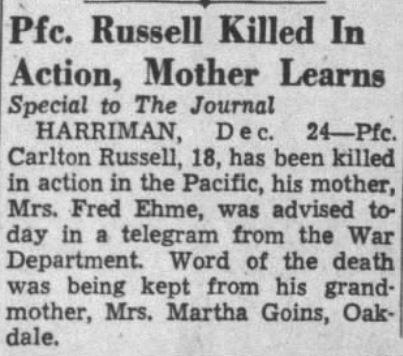 Carleton Russell was born on 17 August 1924, the son of Billie Beatrice Goins and stepson of Fred Ehme.
