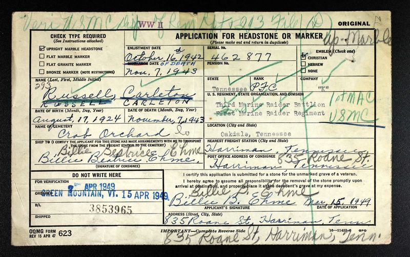 - Burial/Memorial Location: Crab Orchard Cemetery, Oakdale, TN