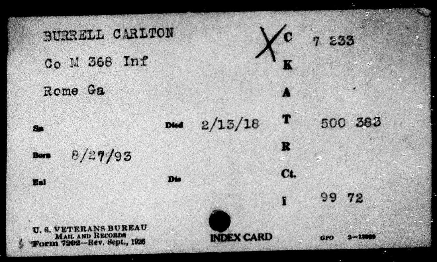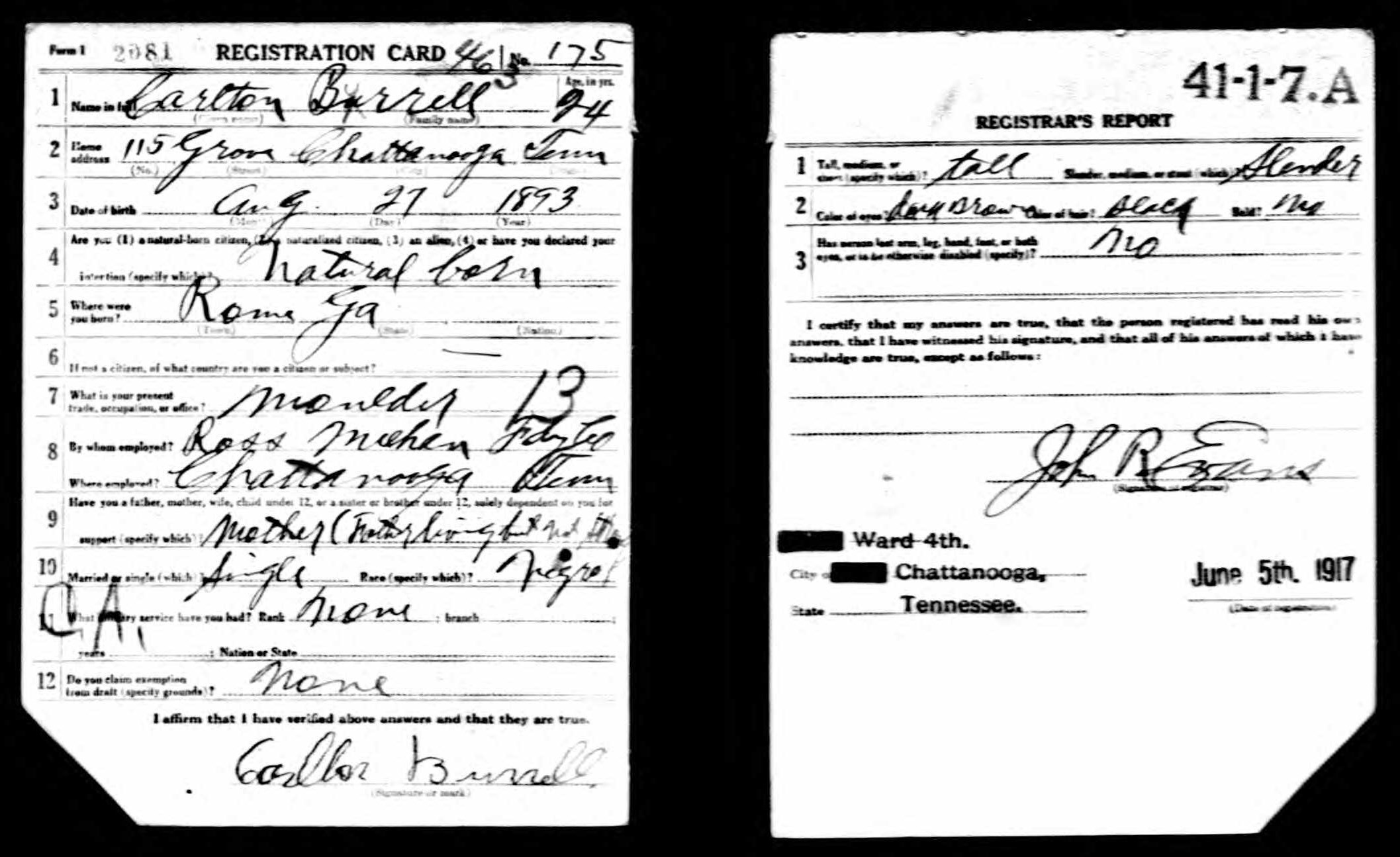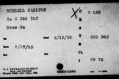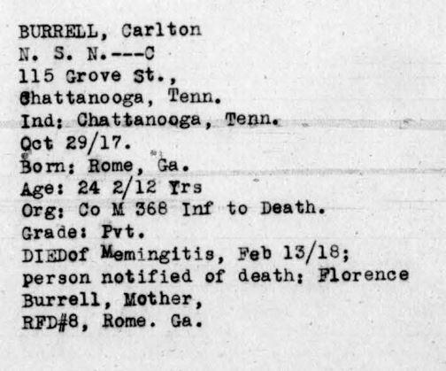 Carlton Burrell was born in Rome, Georgia, son of Ferdinand Burrell and Florence Porter. He died of meningitis at the age of 24.