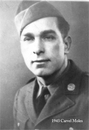 Private Carvel Edward Moles was born on June 11, 1915 in Gunter Town, Tennessee. He was the son of William Wilson and Della Katherine Moles. He had several siblings: Ethie Lee Moles, Beulah Mae Moles, Jess James Moles, Corz Izora Mole, Cynthia Jane Moles, Porter Harson Moles, Dallie Moles, Emma Marie Moles, Roy Luther Moles, Bertha G. Moles, Billie Eugene Moles, and Harold Dean Moles, and Kenneth Jimmy Moles. He was raised in Crossville, Tennesse.