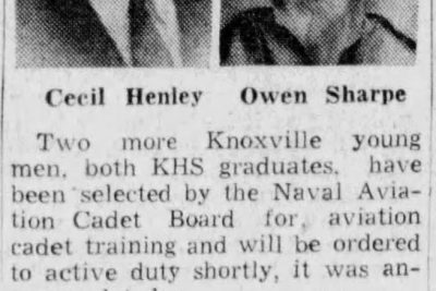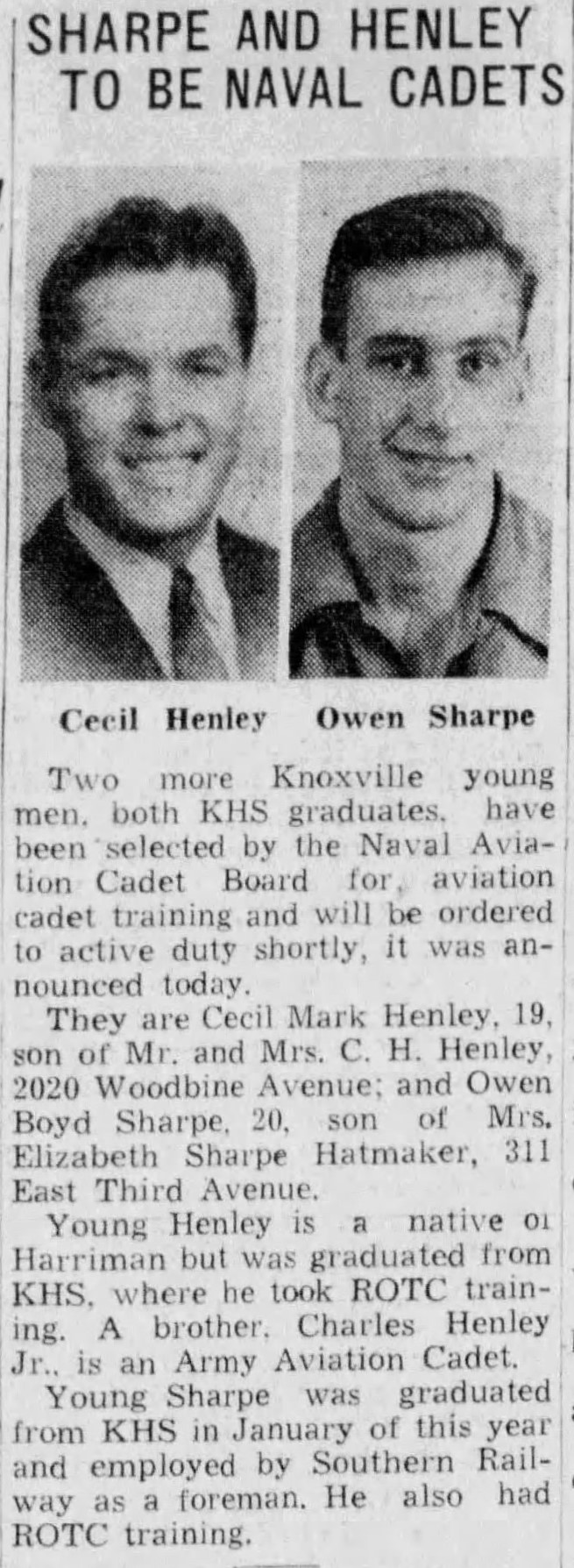 Cecil Henley was one of a Group naval aviation cadets from Knoxville who completed his primary flight training at a Naval Air Station in the South and was transferred to a Naval Air Training Center in another section of the South to begin intermediate training.
