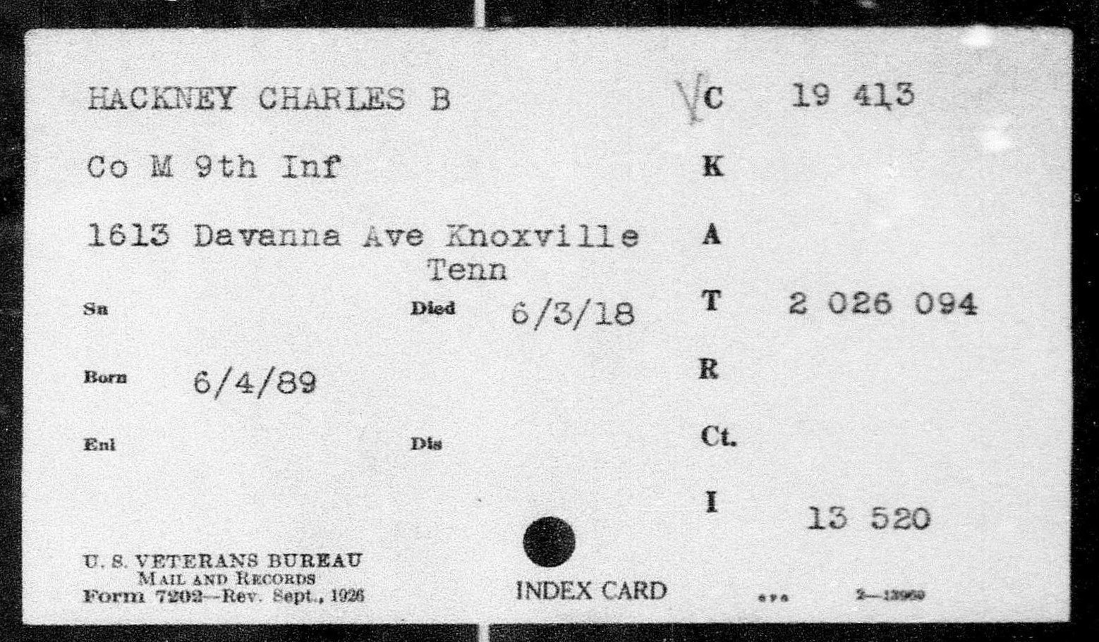 Charles Hackney was born in Knoxville, Tennessee, son of Maggie Hackney.