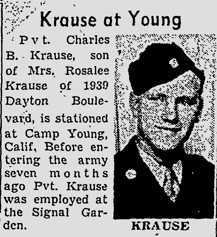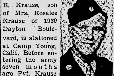 He was a brother of James Kraude of Dayton Boulevard, and of Pfc. Billy B. Krause, who is now stationed in Belgium with the army.